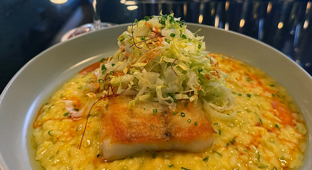 Notably, the Baby Iceberg Salad stands out, offering a refreshing twist with ripe avocado slices, pumpkin seeds, salted cucumbers, and a zesty green goddess dressing. The roasted cod is another highlight: served on a bed of lemon butter saffron rice, it is perfectly flaky, topped with a citric-infused slaw.