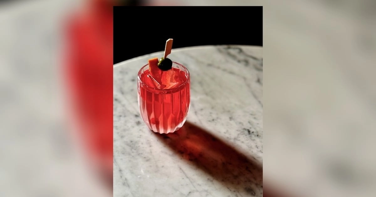 Bartender Derek Fulbright gives a spring twist to the classic Vieux Carre in his Gambit and Rouge cocktail. This drink combines cognac, rye whiskey, and vermouth with a house-made strawberry-pepper syrup and bitters, showcasing a savory-sweet depth.