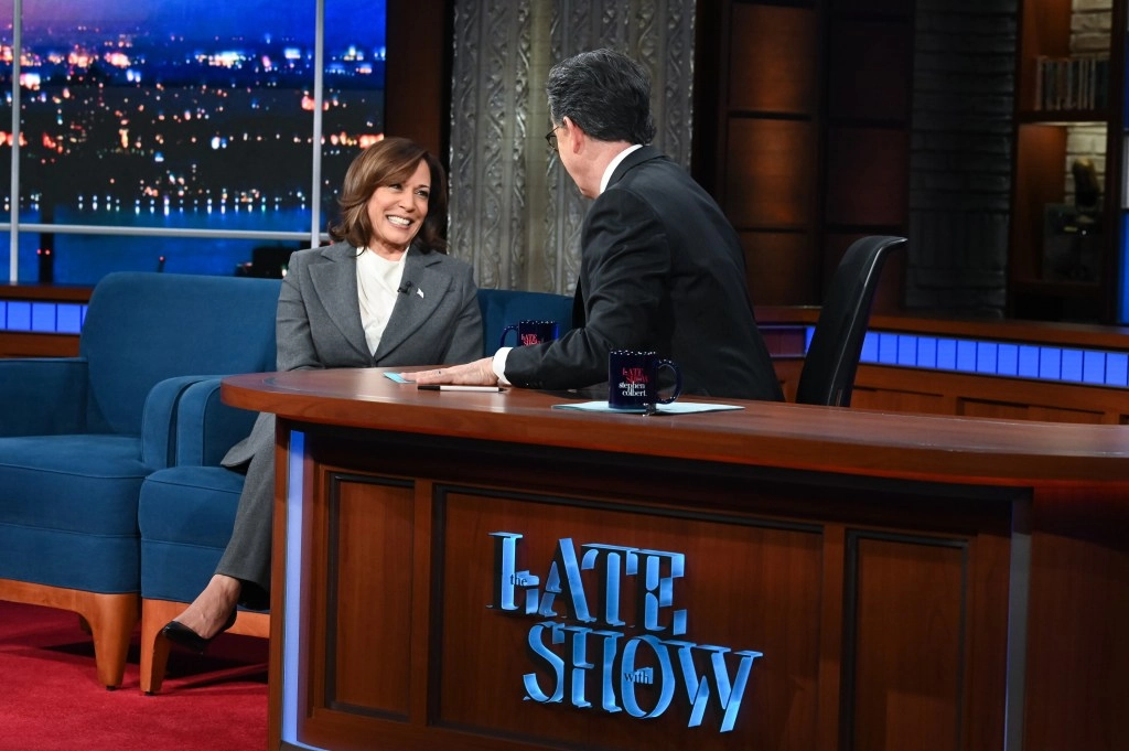 Kamala Harris concluded a full day of media appearances with a visit to Late Show with Stephen Colbert. During her time on the show, she reiterated her pointed criticisms of Donald Trump and described her experience in the “whirlwind” of a presidential campaign.