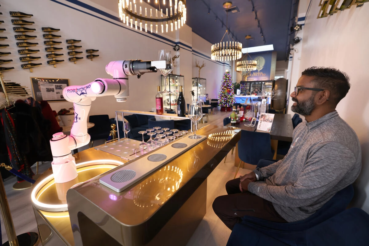 The winery, known for its robotic server, was fined for promoting and serving wine on the sidewalk off Lincoln Avenue, along which the Napa Valley thoroughfare Highway 29 runs.