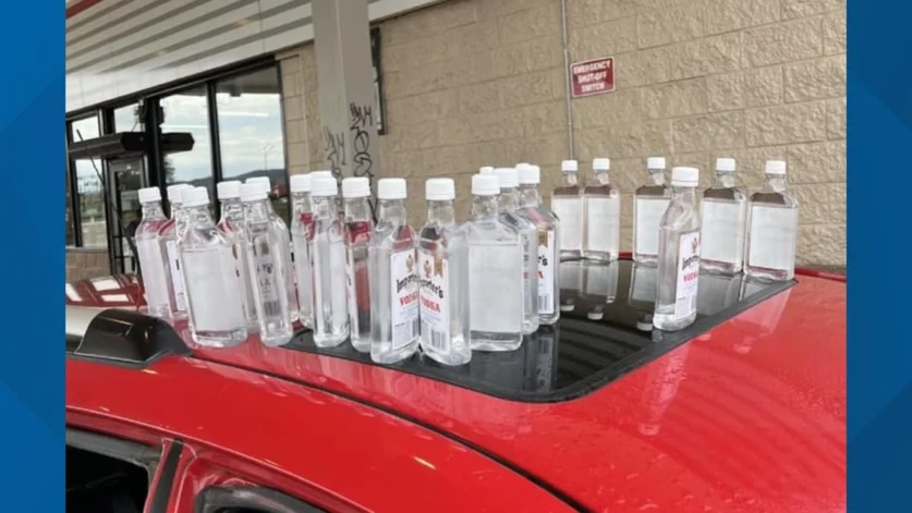 The officers then took a 24-year-old man, a 34-year-old woman and a 31-year-old woman into custody and searched the car, where they found 24 more bottles of the vodka, a “large amount of cash” and a loaded gun.
