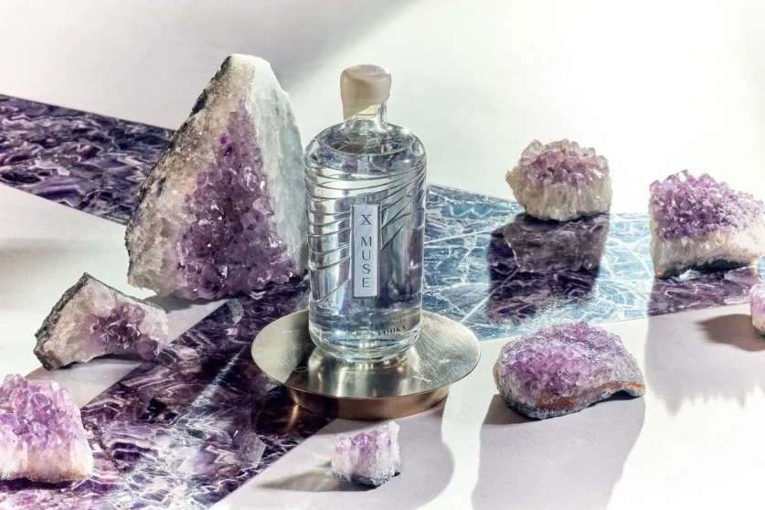 This is where the mysticism of X Muse comes into play. The water used in the vodka production undergoes a unique process involving “magic drops” passed through a vortex and rested on amethyst crystals, with the intention of infusing the vodka with calming energy. The name X Muse, pronounced as “tenth muse,” is inspired by a sculpture by Scottish artist-philosopher-gardener Ian Hamilton Finlay, symbolizing a spirit beyond the traditional nine Greek muses.