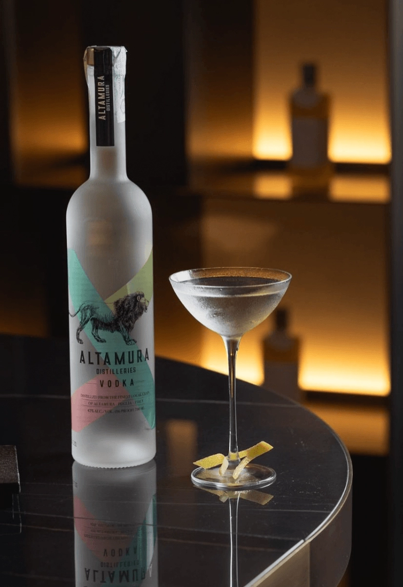 The meticulous distillation process enhances the unique flavors of the wheat, resulting in subtle notes of aniseed, lemon zest, and pepper, reflective of the Italian landscape. Altamura Vodka boasts a distinctive bottle design featuring a lioness symbolizing strength and pride, a nod to the heritage of Puglia. The three stripes on the bottle represent the vibrant elements of the region—sun, sea, and earth.